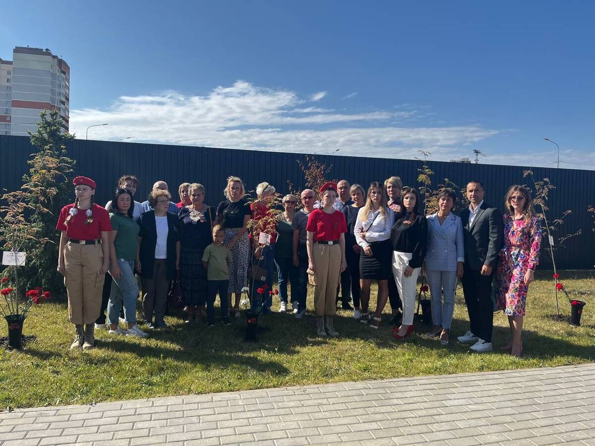 Спустя год родные участников спецоперации, школьники, почетные гости почтили память героев, возложив цветы к уже подросшим деревьям.