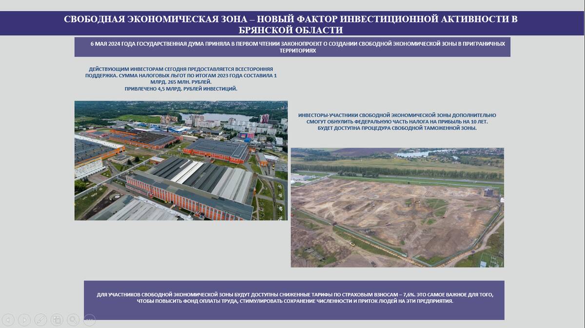 На Брянщине за это время было создано шестнадцать новых производств. Среди завод газового оборудования, который обеспечивает потребности региона и соседних областей, современный кожевенный завод, выпускающий продукцию для обувной и мебельной промышленности.