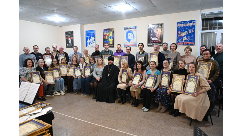 Артисты Брянского городского академического хора были награждены архиерейскими грамотами. Вручал награды игумен Тихон (Колесняк), сообщает «Брянская Губерния».