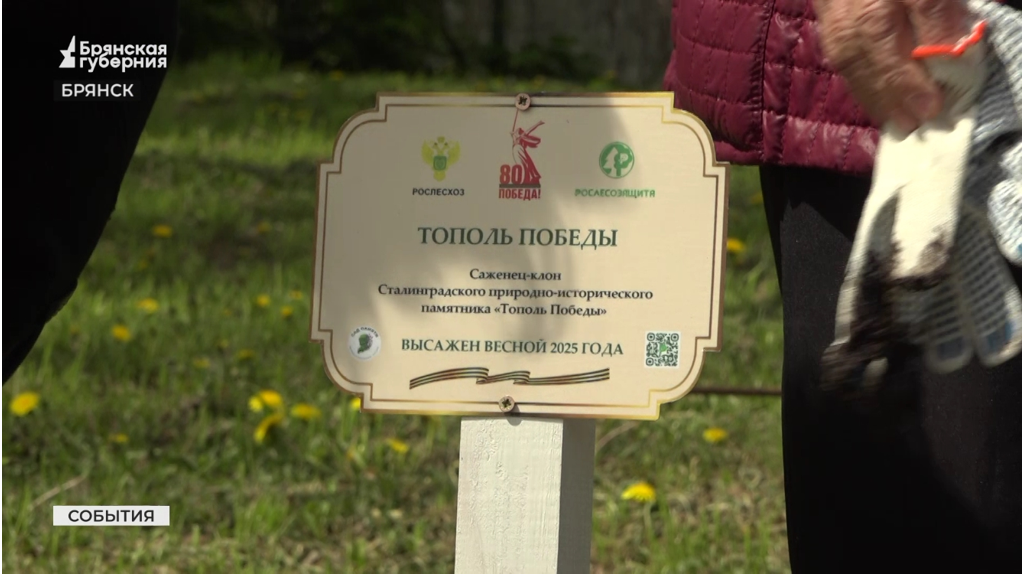 В Брянске в «Саду Победы» высадили саженец-клон знаменитого «Тополя Победы» из Волгограда. Легендарное дерево является свидетелем кровопролитных боёв Сталинградской битвы.