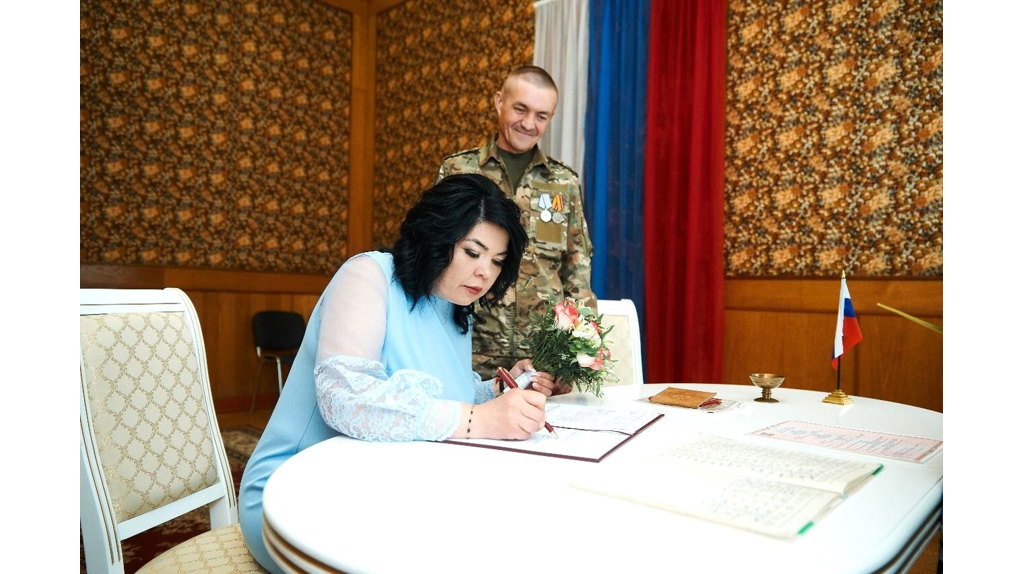 В настоящее время Сергей, участник специальной военной операции, проходит лечение после ранения. Сотрудники отдела ЗАГС Татьяна Шакина и Татьяна Секова вручили новобрачным документ о заключении брака и пожелали им здоровья, счастья и мира.