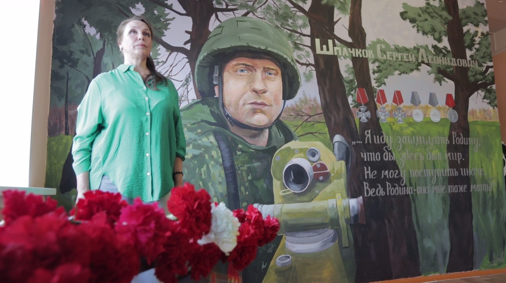 Школа № 41 также отметила своего выпускника, участника СВО Сергея Юрьевича Скиданова, памятным муралом.