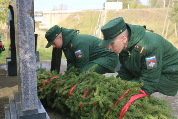 В завершении митинга все присутствующие почтили память В.П. Мирошниченко и всех погибших защитников Отечества минутой молчания и возложили гирлянду, венки и цветы, к мемориальному комплексу Героя Советского Союза.