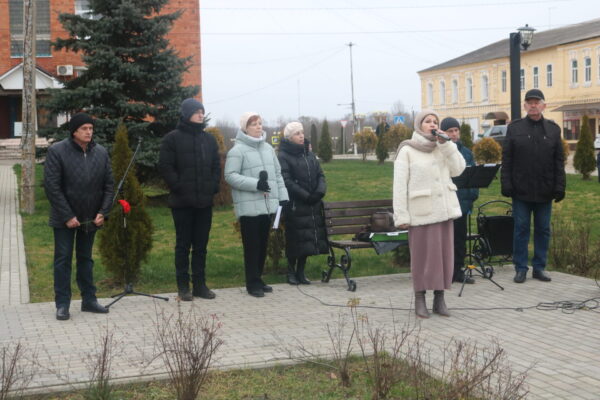 Песни о героях отечества прозвучали в исполнении Владимира Ребезова, Натальи Кондрашовой, Геннадия Силютина, Анастасии Мащенко, Александра Ляпина. Стихи читал Иван Гаврин. Мигинг-концерт провела Татьяна Ребезова.