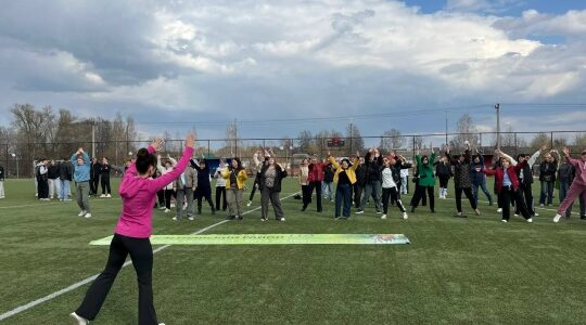 На территории детско-юношеской спортивной школы собрались люди, желающие принять участие в ...
