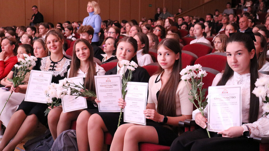 В Брянске, в детской школе искусств №1 имени Николаевой, 26 сентября прошла церемония награждения школьников, получивших именные муниципальные стипендии. Денежное поощрение от городской администрации получат 250 учащихся в трёх номинациях: «Образование», «Культура» и «Общественные молодёжные объединения».