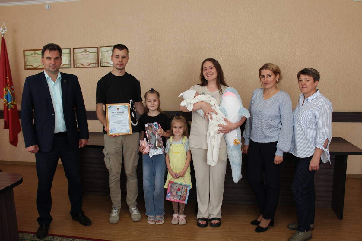 В администрации Суземского района прошла торжественная церемония вручения сертификата на областной материнский капитал. Его получили многодетные родители Сугаковы.