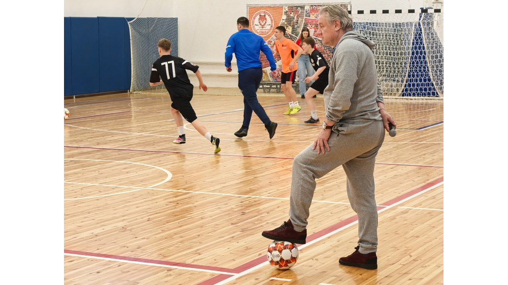 Студенты провели разминку и сыграли двусторонний матч. Позже в конференц-зале Андрей Канчельскис рассказал о своей игровой карьере в титулованных клубах Европы.